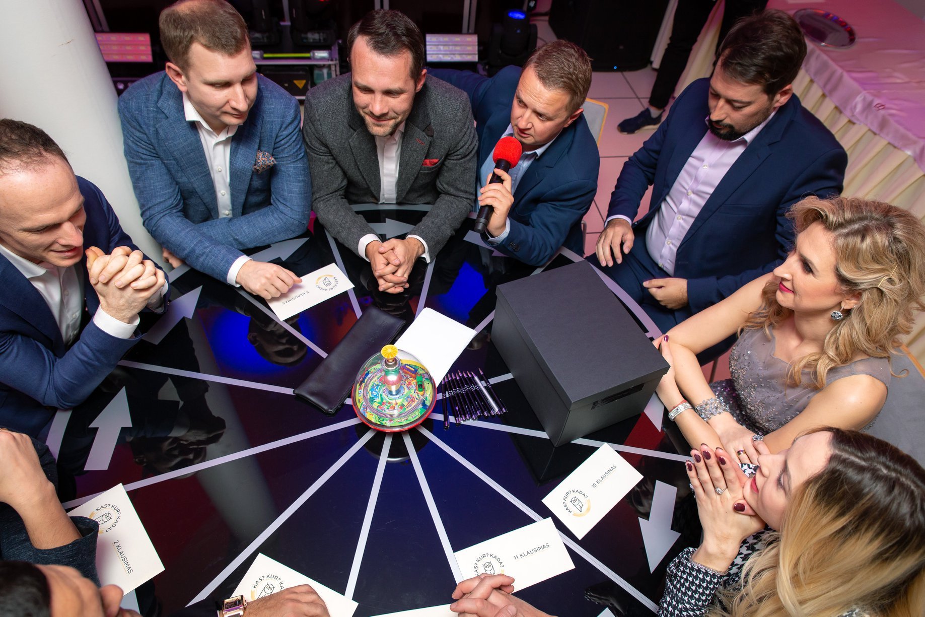 Druskininkų klubo narai rinkosi į šventinį vakarą Europa Royale Druskininkai viešbučio restorane. Renginio metu klubo narai išbandė jėgas legendiniame intelektualiame žaidime: Kas? Kur? Kada?